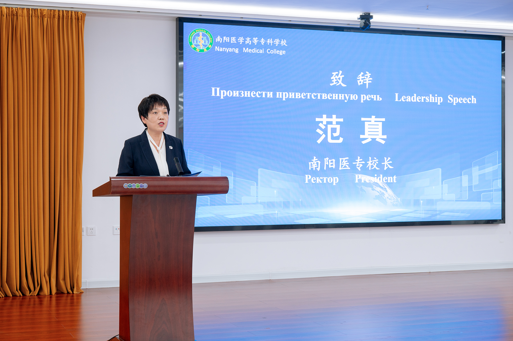 初级班学员代表阿丽霞分享了从医圣故里学习中医的重要意义;高级班学员因吉拉表达了将中医疗法融入俄罗斯医学实践的坚定决心。教师代表夏灵果表达了对学员信任、学校重视和同事支持的感谢,并对未来进一步的国际合作充满期待。