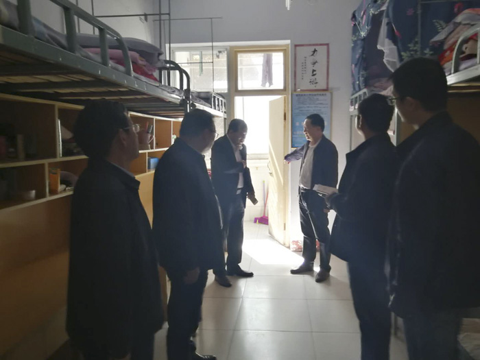本网讯(文/宣传部 杨金运)为进一步抓好学校文明创建工作,2018年10月30日上午,校长方家选同志带队,党委副书记逵应坤、副校长郭万周和相关部门的领导深入到学生食堂、学生宿舍、校内环境建设等对学校文明创建活动开展情况再次进行了实地查看,召开了现场办公会。方校长针对存在的问题,提出了指导性意见,并要求相关部门负责同志严格对照文明创建标准,抓好整改落实,确保校园文明、和谐、美丽。(编审/王永科 摄影/宣传部)