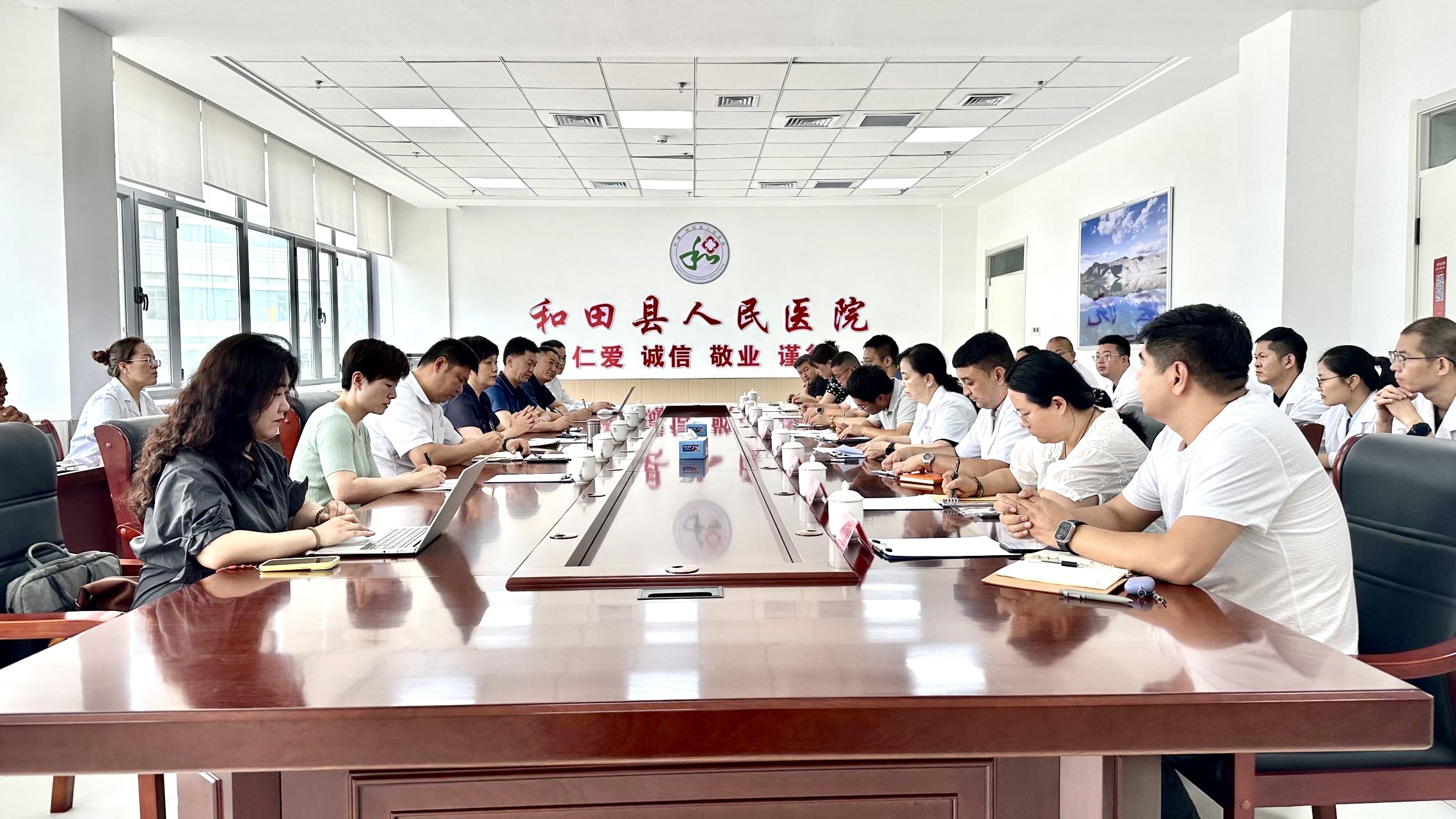 座谈中,范真详细介绍了学校的基本情况以及在专业建设、产教融合、人才培养等方面的特色优势,对考察单位目前人才需求进行了深入了解,希望能与当地医疗卫生单位联合开展订单定向培养计划,让更多南阳医专毕业生扎根新疆。和田县县委常委、宣传部部长汪志鑫,向范真一行表示欢迎,高度认可南阳医专毕业生的专业素养介绍了和田新城建设中的人才需要,期待双方在科研基地建设、人才输送、中医适宜技术推广等方面深化合作。