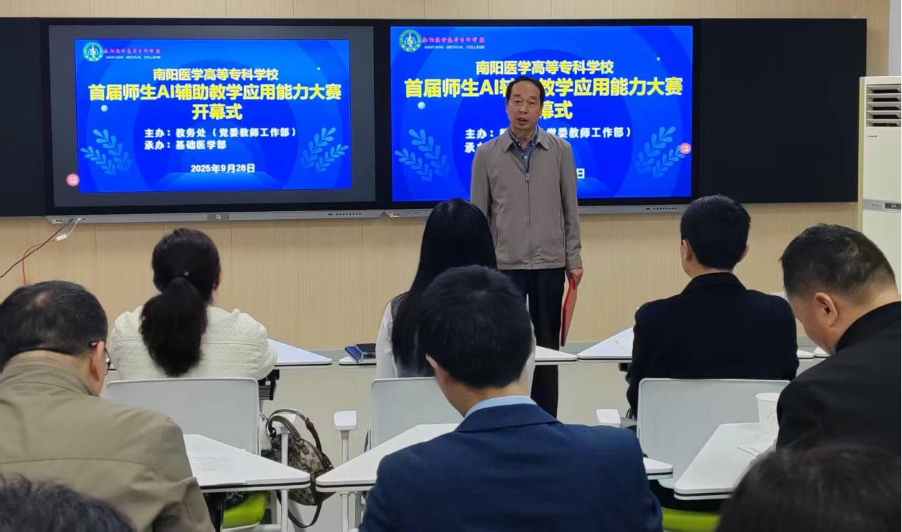 本网讯(文/教务处 裴林国)9月30日,我校举办首届AI赋能师生教学应用能力大赛。副校长刘荣志出席,相关部门负责同志参加。共79名师生参赛。