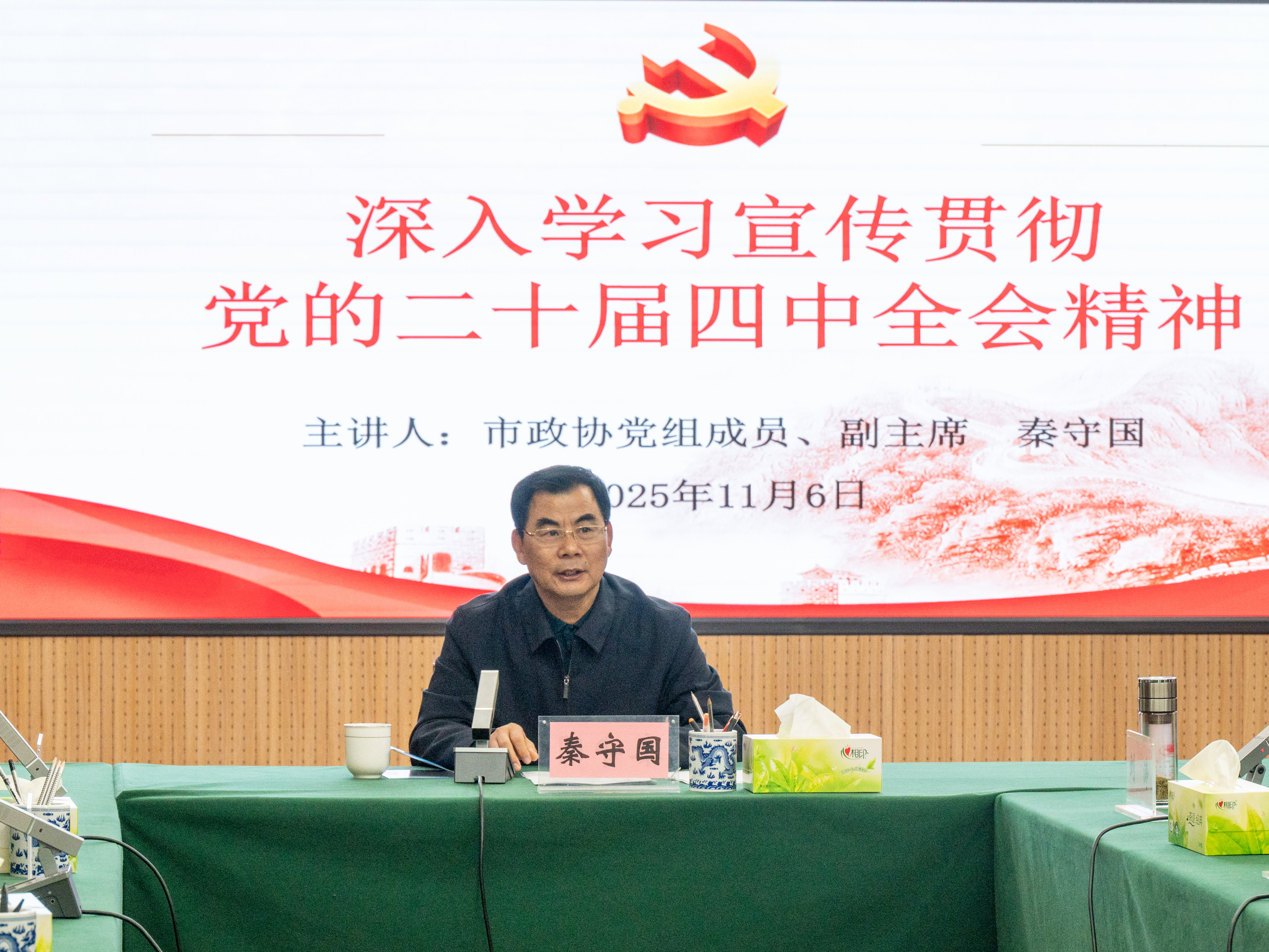 本网讯(文/宣传部 曲喜悦)11月6日下午,市政协党组成员、副主席秦守国到南阳医专仲景东区仲景文化中心610会议室,以“深入学习宣传贯彻党的二十届四中全会精神”为主题,为师生讲授思政课,南阳医专党委副书记刘涛主持该次会议。参加本次思政课教学活动的有校领导班子成员、中层干部、思政课教师代表和学生代表。