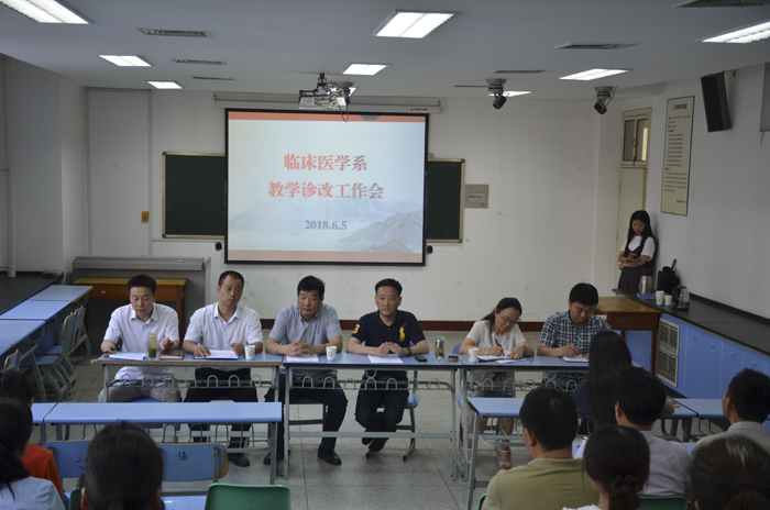 本网讯(文/临床医学系 王静)6月5日下午,临床医学系在4号教学楼2204学术报告厅,组织召开了教学诊改工作会。副校长郭万周出席,系领导、一附院医教科副科长张世荣,全系教职工参加会议。
