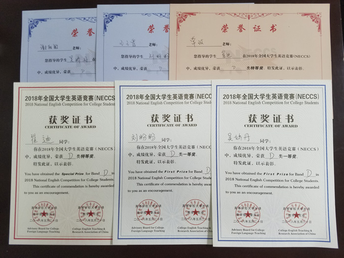 全国大学生英语竞赛是经教育部高教司批准、由教育部高等学校大学外语教学指导委员会和高等学校大学外语教学研究会联合主办的全国唯一的大学生英语综合能力竞赛,旨在配合教育部高等教育教学水平评估工作,贯彻落实教育部关于大学英语教学改革精神,促进大学生英语水平的全面提高。今年,我校共有376人参赛,70名学生获奖,其中国家级特等奖1人,一等奖2人,二等奖11人,三等奖19人,优秀奖37人。