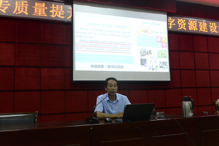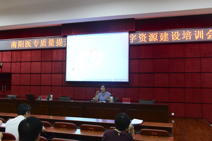 本网讯(文/教务处 张峰)2018年6月20日下午,我校在图书馆五楼召开南阳医专质量提升项目推进暨数字资源建设培训会。校长方家选出席,各项目责任人及主要成员、各系(部、院)主任、副主任、教学办主任、各教研室和实验实训室主任及骨干教师参加了会议。大会由副校长徐持华主持。