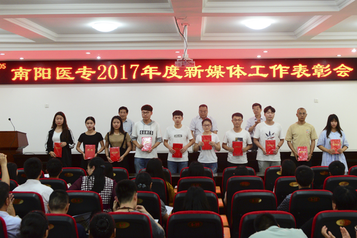本次年度表彰评选主要依据各新媒体2017年度关注量、阅读量、推送作品量和“校园十佳新媒体投票”票数等数据,进行综合评议后认定。最终,南阳医专官方微信、医路花开(临床系)、仲景传人(中医系)、医技视界(医技系)、南阳医专图书馆微信、南阳医专天使摇篮(护理系)、南阳医专官方微博、南阳医专学生会微博、南阳医专校园之声广播站微博、南阳医专图书馆阅轩读书会微博等平台被评为十佳新媒体。党委宣传部、临床医学系、中医系、医学技术系、图书馆、护理系、校团委等被评为新媒体年度工作先进单位。(编审/李峰松 摄影/程安琪)