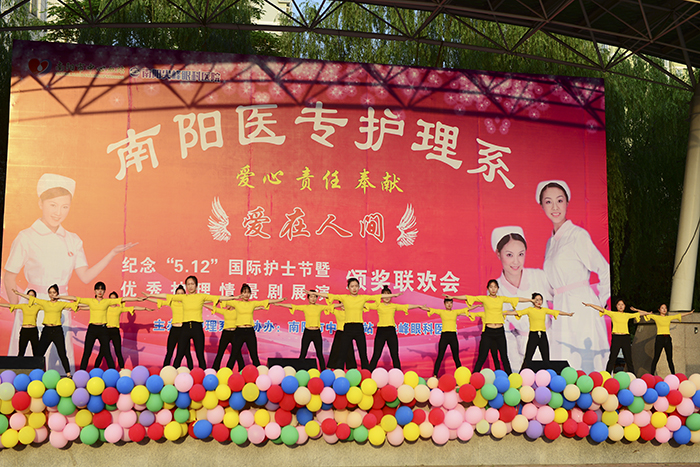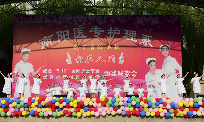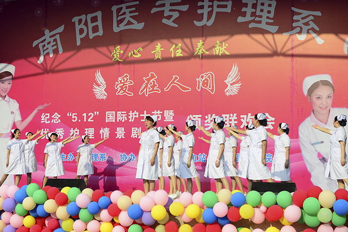 联欢会在护士授帽及宣誓仪式中拉开帷幕。同学们身着护士服,排着整齐的队伍,单膝跪地,由老师们为其戴上洁白神圣的燕帽,感受着白衣天使职业的崇高和伟大。接着,全体同学起立,举起右手,庄严地宣誓,在铮铮誓言中表达了自己不辱白衣天使神圣使命的决心。南阳市第一人民医院的一线护理工作人员表演的音乐情景剧《我们的工作和您想象的不一样》点燃了整个现场,深深诠释了护理工作者对生命的尊重和对责任的理解,歌颂了护理工作者不辞辛劳、救死扶伤的高贵品质。歌伴舞、诗朗诵、情景剧、瑜伽、健美操…….同学们用倾情的演出庆祝白衣天使自己的节日,抒发了对护理事业的热爱和忠诚。最后,联欢会在歌伴舞《共圆中国梦》中圆满落下帷幕。