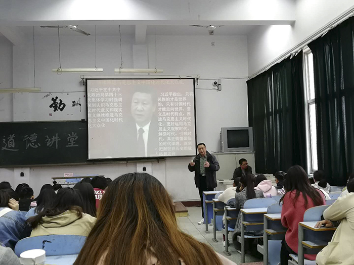 本次活动分为宣倡议、听讲座、诵誓词、齐讨论、作承诺、谈体会等六个环节。首先,2017级针灸推拿专业学生李思凡宣读了《奉献青春·爱岗敬业》倡议书。接着,系党总支书记毕跃忠作了《学习标兵精神·争做岗位能手》专题讲座。他结合身边道德模范的典型案例,深入阐释了习近平总书记关于深刻认识马克思主义时代意义和现实意义,继续推进马克思主义中国化时代化大众化的讲话精神。他要求全体师生坚定理想信念,勇于追寻梦想;履职尽责奉献,甘于拼搏进取;坚守道德底线,自觉弘扬正气;积极开拓创新,直面未来人生,充分发挥个人才智,为共筑“中国梦”做出积极的贡献。