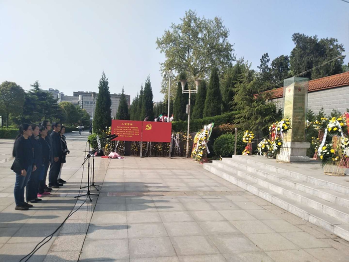 在庄严的气氛中,同志们来到烈士纪念碑前,列队整齐,肃立默哀,深切缅怀革命先烈;然后向先烈鞠躬,表示崇高的敬意;在纪念碑前重读了入党誓词。随后,大家瞻仰了革命烈士墓碑,参观了南阳市革命纪念馆。