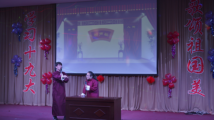 极具动感韵律的健美操表演将青春与活力带给了观众。相声表演《文武双全》,淋漓尽致的展现了传统文化的独特魅力。系主任庞景三教授将旷达的蒙古风情用悠扬的歌声带到我们面前,一曲《鸿雁》赢得了师生阵阵掌声与喝彩声。在歌声与掌声的余韵中,中医系对2017年评选出的各项国家奖学金获得者和学生会优秀干部进行了集中表彰。徐凯老师朗诵的《面朝大海,春暖花开》祝愿每位同学都能以积极的态度面对生活。葫芦丝《月光下的凤尾竹》让师生陶醉在美妙的传统声乐之中。情景剧《你好,青春》是时间的沙漏,也是青春的缩影。在中医系老师合唱的《祝福祖国》、《走向复兴》将整场晚会推向了高潮,赢得了经久不息的掌声。