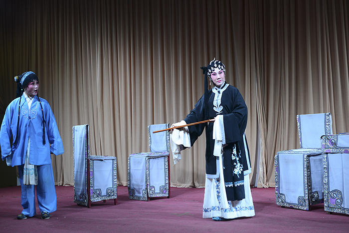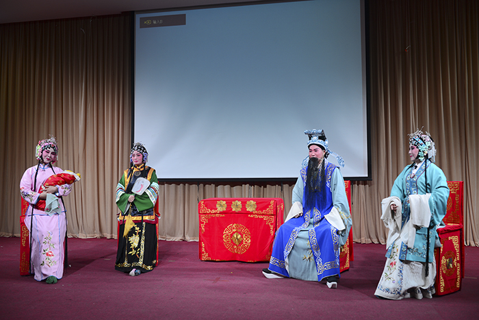 豫剧院一团的演员们为大家上演了传统经典剧目《三娘教子》和《清风亭》。演员们精湛的演技、字正腔圆的唱功,不时博得师生们阵阵热烈的掌声,生动的剧情、感人肺腑的细节让很多同学热泪盈眶。同学们在享受经典文化大餐的同时,也进一步感受到了人性的光辉与卑微,愉悦身心,荡涤灵魂。