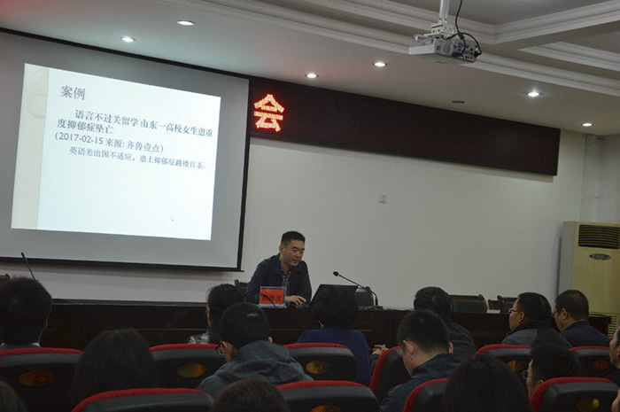 唐教授从《精神卫生法》出台背景开题,阐释了《精神卫生法》出台的重要意义。唐教授以其丰富的临床工作经验,结合高校中发生的经典案例,将《精神卫生法》总七章共85条法律条款中与高校学生工作相关的条款做了一个深入细致的整体梳理和解读。指出了新形势下,大学生心理危机干预工作面临的困惑和挑战。唐教授列举数字准确,语言幽默风趣,见解深刻,高屋建瓴,既有专业厚度又紧密联系高校日常工作,讲座历时2个小时,引起广大师生的热烈共鸣。孟晓红处长作了总结,她说,聆听了唐教授的报告,广大师生获益良多,将有效增强辅导员老师们依法开展学生工作的意识和能力,对我校今后的心理健康教育工作和学生工作具有重要的推动作用。