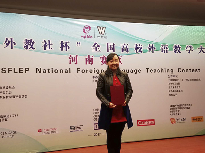 我校教师在第八届“外教社杯”全国高校外语教学大赛河南省赛区中获二等奖