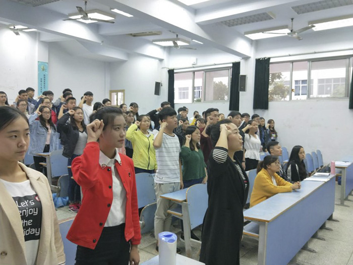 党总支书记毕跃忠致辞。他指出,在全国喜迎党的十九大即将召开之际,举办针灸骨伤系新一届学生会成立暨培训大会具有重要的意义。面对新的机遇,新的任务,新的挑战,全体学生会成员要继续发挥好联系学校与学生的桥梁和纽带作用:准确定位,明确职责,做好服务师生工作;严于律已,积极进取,发挥模范带头作用;勇于担当,务实苦干,不断增强组织凝聚力;团结协作,自强不息,充分发扬无私奉献的精神。系学工办主任燕远伟宣读了《针灸骨伤系关于第十二届团总支学生会成员任免通知》;学生代表王禹华带领全体学生会成员进行了庄严的宣誓活动,新一届学生会成员代表姬雅静、张丽、张子怡同学分别做了代表性发言。