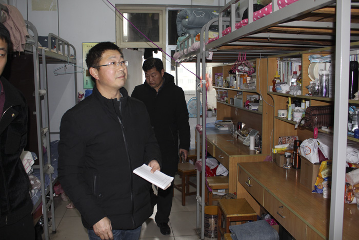 本网讯(文/学生处 梁卡军)步入冬季,天气寒冷,天干物燥,火灾易发多发。针对这一特点,为了营造安全有序的公寓环境,强化学生公寓安全,有效防范和坚决遏制学生公寓重特大事故发生,12月19日下午,学生处联合保卫处、生活服务中心进行了一次学生公寓冬季安全大检查。学校党委委员、副校长郭万周,学生处处长孟晓红、保卫处处长牛嵩山和生活服务中心主任张元凯以及三个部门的有关同志,各系(部、院)学工办主任、公寓专干参与检查。