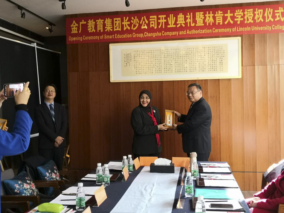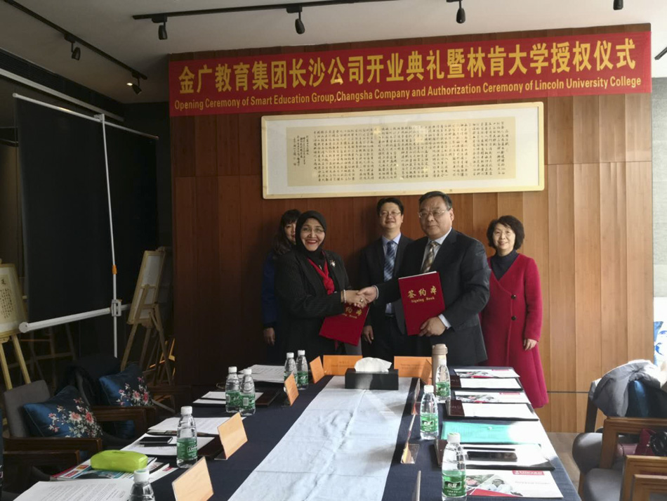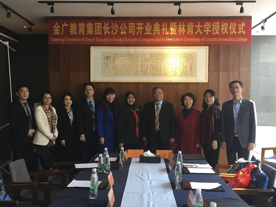 1月22日,应金光教育集团和马来西亚林肯大学学院的邀请,副书记逵应坤带领对外交流合作处有关同志,在长沙与上述集团和高校负责人进行了会面。