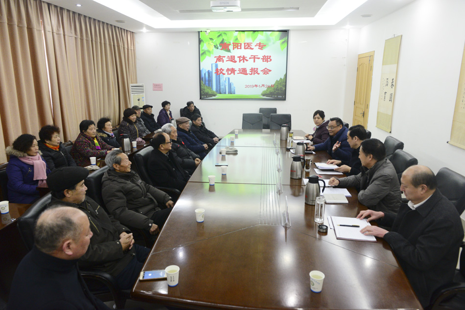 本网讯(文/老干处 艾静)元月24日上午,我校召开离退休干部校情通报会,20余名离退休干部与校领导欢聚一堂,喜迎新春,共话发展。会议由逵应坤副书记主持,全书记、方校长、张胜海副校长、范真副校长出席了会议,党办、组织部、人事处、宣传部、医教室等部门领导参加了会议。