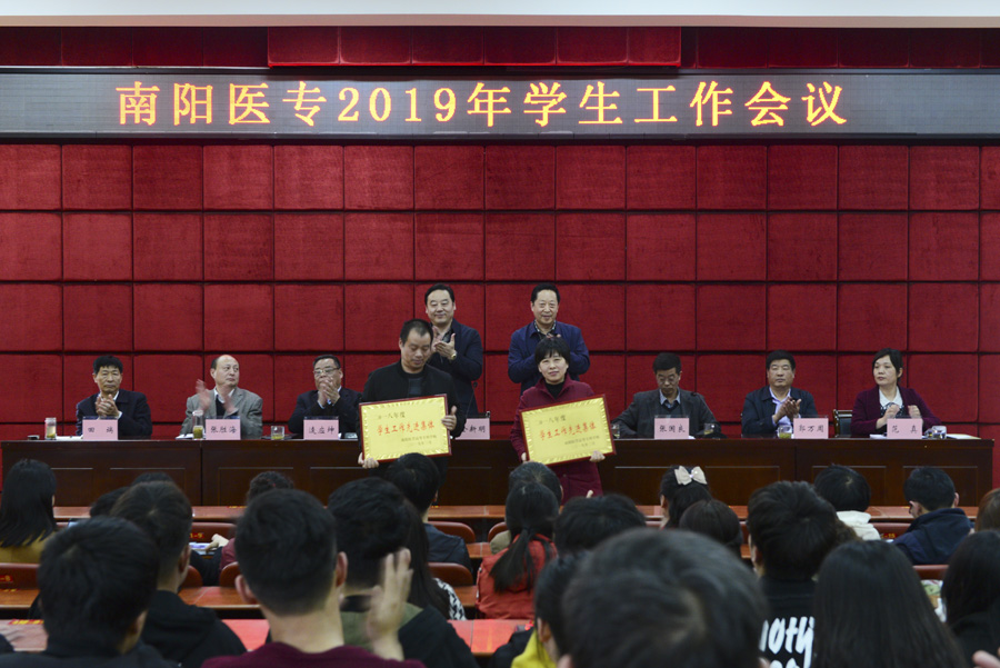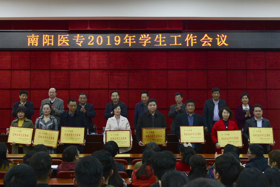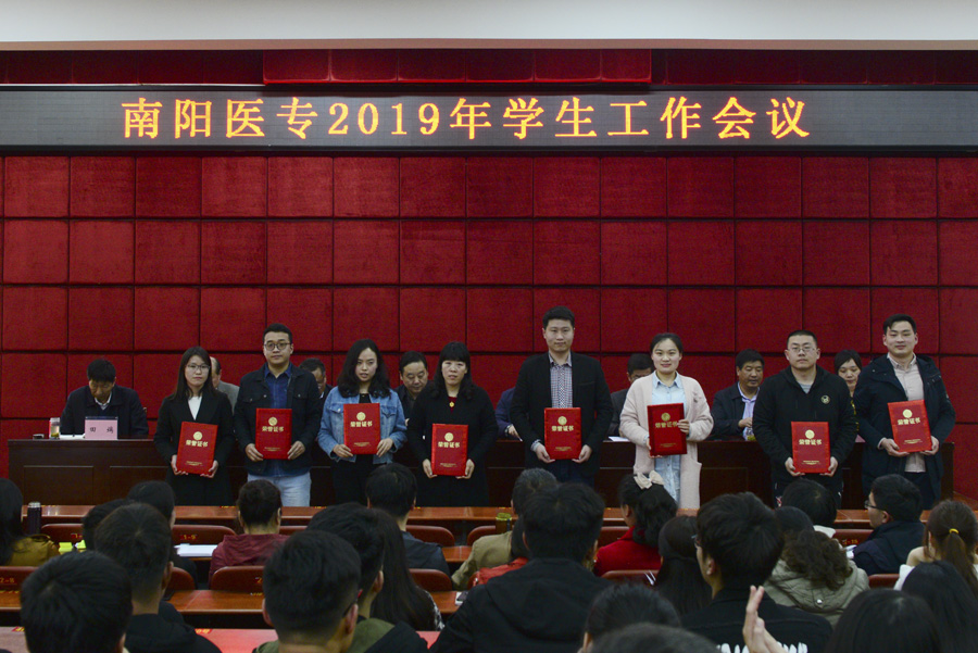 大会对2018年度学生工作、征兵工作、就业创业工作、资助工作先进集体和个人进行了颁奖,还对2018年河南省第七届辅导员素质能力大赛一等奖获奖选手刘怀东、省辅导员精品项目主持人田雨和学校优秀辅导员、班主任代表颁了奖;护理系主人吕云玲和临床医学系党总支书记秦玖刚先后作了典型发言。
