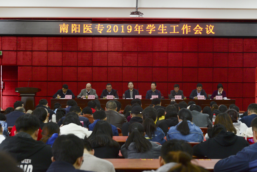 本网讯(文/学生处 余飞海)3月18日下午,我校2019年学生工作会议在图书馆学术报告厅隆重举行。全体校领导出席会议,校本部副科以上干部、政教部全体教师、全体辅导员、2019届毕业班班主任和学生干部代表参加会议。会议由校长方家选主持。