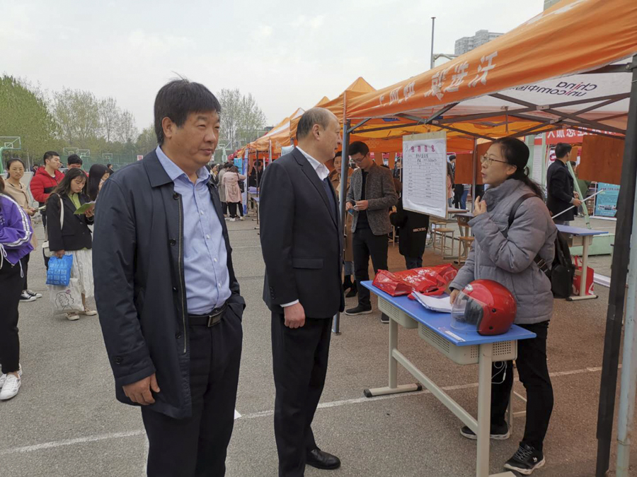 本网讯(文/学生处 张辉)春回大地,万象更新。3月30日上午,我校2019年毕业生供需见面会在主校区篮球场隆重举行。校领导方家选、张胜海、郭万周、田端来到现场,检查指导招聘会工作,并与参会单位、应聘学生进行亲切交谈。