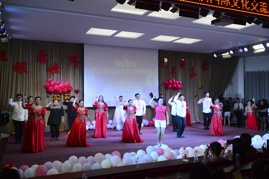 本网讯(文/国际教育学院记者站 刘洋)5月24日晚,由对外合作交流处、国际教育学院主办的南阳医专第三届国际文化交流周文艺晚会在仲景东区报告厅隆重举行。校党委书记全新明、副书记逵应坤、纪委书记张国良,副校长张胜海、郭万周,范真,工会主席田端,相关部门负责人、外籍师生、家长代表与我院师生欢聚一堂,共享文化盛宴。