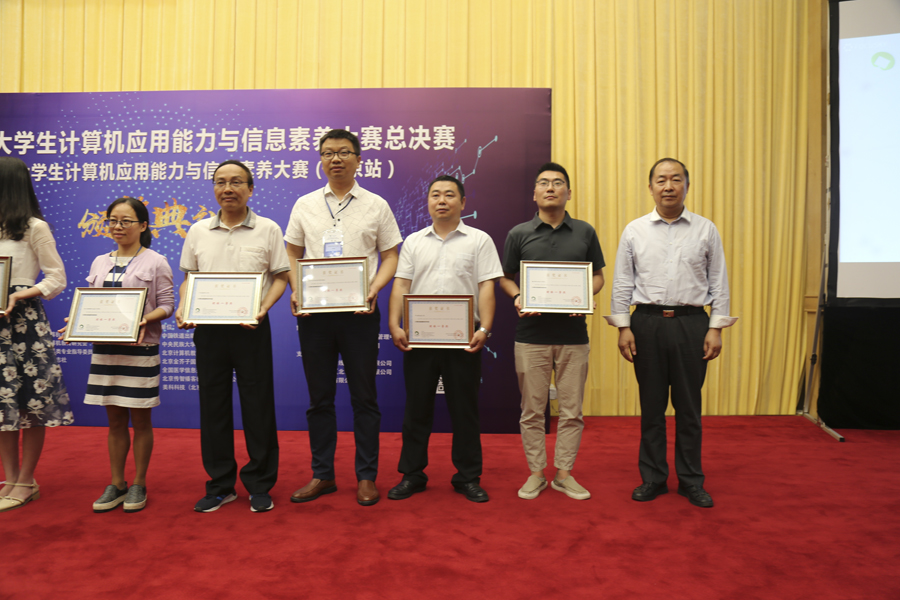 本网讯(文/ 卫管系 钮靖)6月1~2日,第九届全国大学生计算机应用能力与信息素养大赛总决赛在首都经济贸易大学成功举行。经过激烈角逐,我校代表队获得全国总决赛“计算机基础赛项”高职组团体一等奖,“小程序创意设计”和“Office商务应用能力赛项” 高职组团体三等奖,吴顺利、梁园格同学分别获得个人单项一等奖。钮靖、王博、王秋红、张琪、刘建东等老师获得优秀指导教师奖。我校在本届全国总决赛取得了优异成绩,得到了大赛组委会专家和兄弟院校的一致好评,展示了我校学生的实力,扩大了学校的影响力。