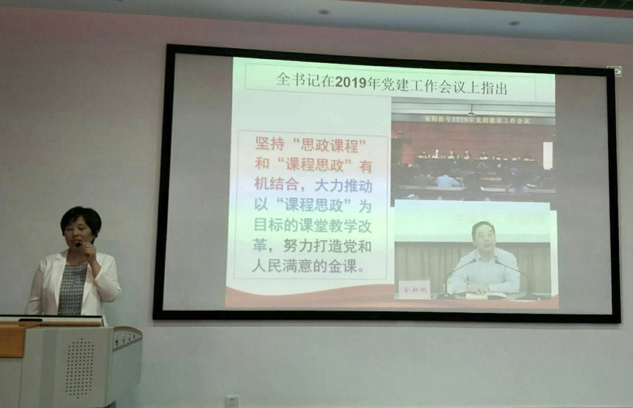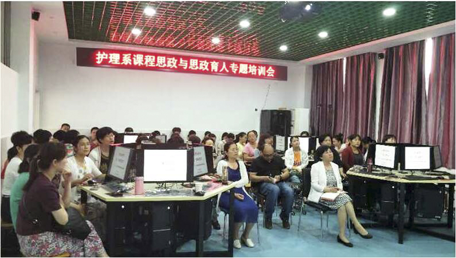 本网讯(文/护理系 李明哲)为促进教师更好的履行立德树人职责,进一步推进课程思政建设,提高人才培养质量,按照《护理系关于开展“课程思政”和“思政育人”研讨活动的工作方案》要求,继4月份各教研室先期开展“课程思政”教研活动的基础上,5月31日下午,护理系召开了“课程思政与思政育人”专题培训会,政教部主任冯晓青和护理系主任吕云玲分别为全系教师进行了专题培训。