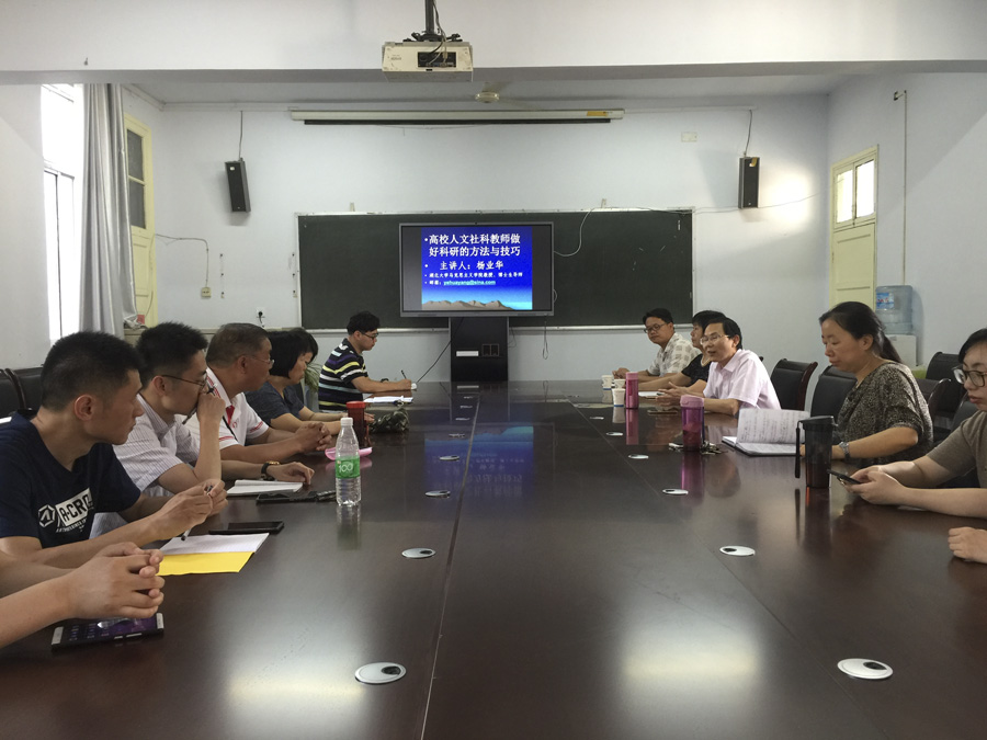 本网讯(文/政教部 雷雨泰)为进一步提高我校思想政治理论课教师人文社科科研水平,落实好校党委书记全新明在政教部调研时的讲话精神,加强思政理论研究工作,6月13日下午,政教部邀请湖北大学博士生导师杨业华教授来我校讲学。政教部主任冯晓青主持讲座,思政课专兼职教师参加活动。