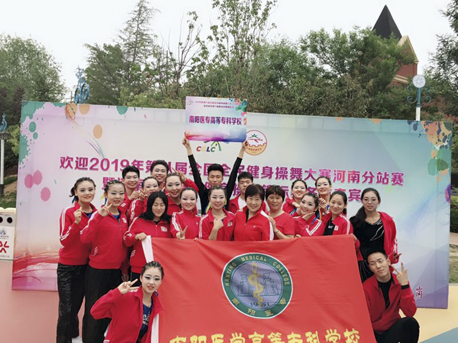 此项赛事由国家体育总局体操运动管理中心、河南省教育厅、中国健美操协会主办,全国全民健身操舞推广委员会、新密市银基冰雪世界主题公园协办。赛事分小学组、中学组、中专组、大学组四个组别,共有1823名运动员参加,其中大学组有47所高校参加比赛,我校组队参加了该组的两个单项比赛。我校健美操队由18名运动员组成,他们分别是临床医学系刘平平,国际教育学院夏银霜、梁博深、李静静,护理系杜文利、钱源、卫祎祎、李梦真、左瑞芳,医学技术系杨宁宁、袁希豪、朱超普、张文浩、曹晓娟、计雨欣、牛慧、王梦然、范友路,领队刘静霞,教练员余黎霞。经过赛场之上激烈角逐,我校代表队凭借扎实的功底、娴熟的动作、默契的配合及完美的发挥,脱颖而出,一举拿下徒手健身操自选套路和排舞推广套路两个单项一等奖,由于他们的出色表现,我校代表队被授予体育道德风尚奖,余黎霞被评为优秀教练员。