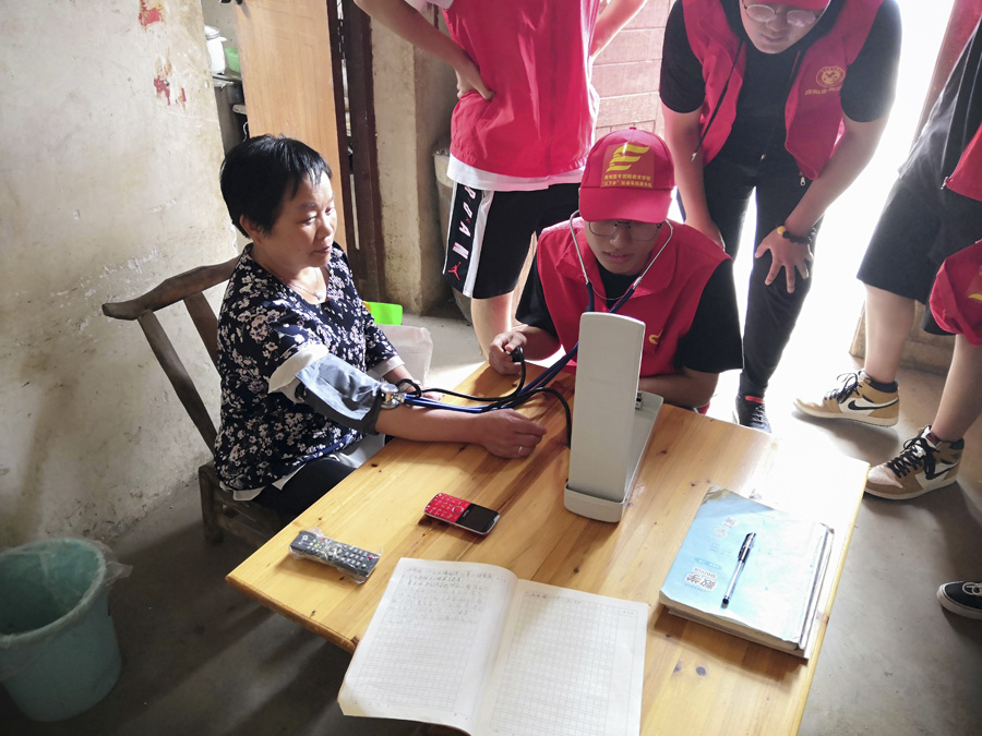 张医生和志愿队员们为老人们诊断疾病、测量血压,了解老人们的身体状况,为他们讲解高血压的相关知识及预防途径,开具相关药物,叮嘱大家要注意身体,适度锻炼。志愿者将观察到的各种情况详细记录,登记病情较为特殊人员的联系方式。之后,志愿者向村民们讲解了关于“暑假防溺水”的注意事项和自救办法等相关知识。