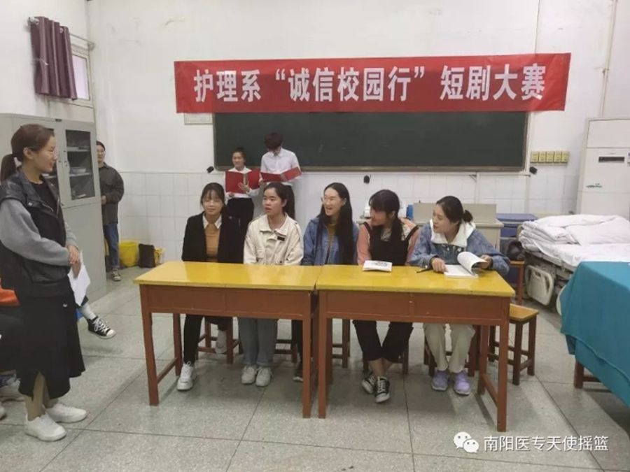 本网讯(文/护理系 闫珂)根据《河南省教育厅等四部门关于举办河南省大学生“诚信校园行”校园短剧大赛的通知》要求,护理系积极开展以“诚信筑未来,奋进新时代”为主题的诚信校园行短剧比赛。