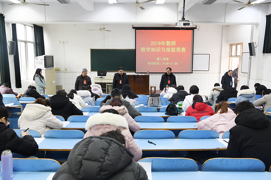 本网讯(文/医教室 焦春义)1月11日上午, 2019年度教学知识与技能竞赛在2号教学楼举行,竞赛采取闭卷考试的方式。其中,护理系、基础部和公教部三个系部50岁以下教师,共计161人参加了本批次竞赛。