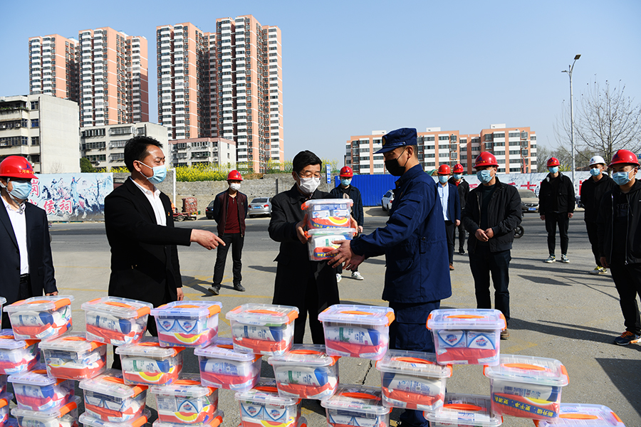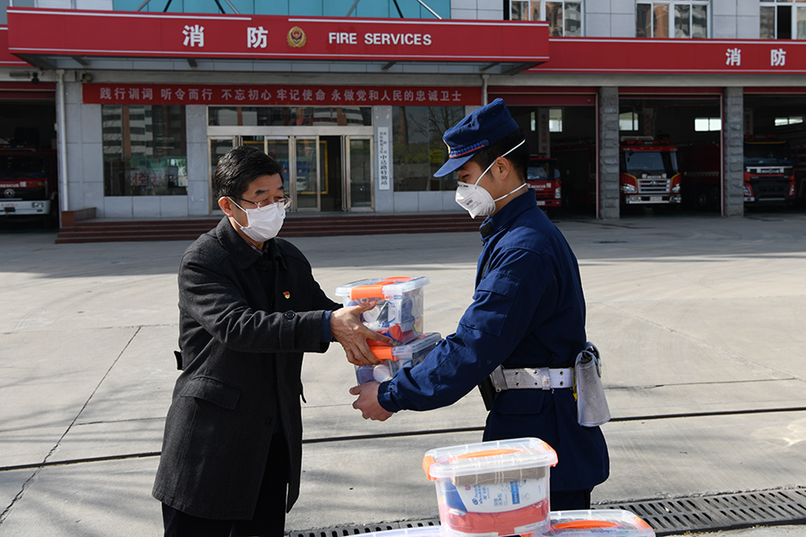 本网讯(文/宣传部 程安琪)3月20日上午,校纪委书记张国良带领学校基建处负责人、承建仲景东区学生公寓建设项目的河南省第一建筑工程集团有限责任公司负责人,慰问我校仲景东区“邻居”消防队指战员,并发放价值5000元的生活慰问品。