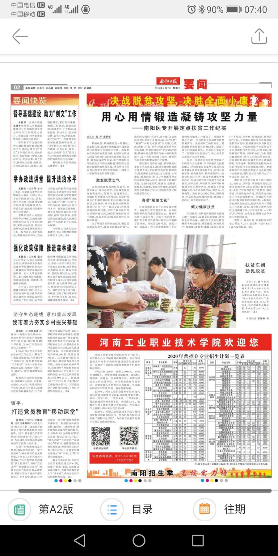 转发南阳日报(文/党委办/ 李梦华)精准扶贫、精准脱贫是一场硬仗,更是持久战,2020 年全面建成小康社会 是目前各级工作的重中之重。高校是 扶贫战役中的重要力量,在脱贫攻坚进 入到收官阶段时,如何充分发挥自身优 势、锻造凝铸攻坚力量,助力贫困地区 夺取脱贫工作的全面胜利,南阳医专党 委经过数年的扶贫实践,15 名帮扶干部 从 2015 年至今坚守在帮扶路上,摸索出 一套富有成效的良策实招。