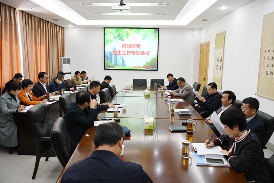 本网讯(文/招生办公室 张旭)11月4日下午,南阳医专2020年招生工作专题会议在1号办公楼3楼会议室召开,校党委书记全新明、校长王立义、党委副书记逵应坤,副校长张国良、郭万周、范真,党办、校办、招生办、学生处、基建处、后勤处、学校各系(院)负责人等参加了本次会议。会议由副校长郭万周主持。