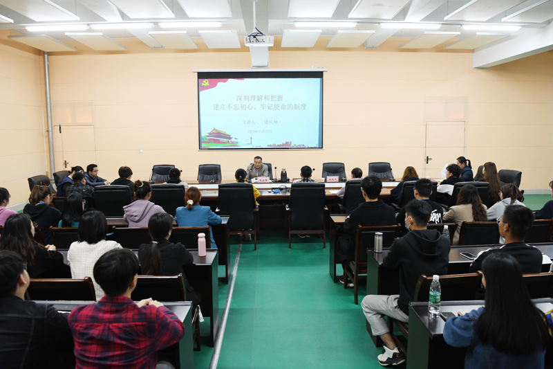 本网讯(文/校团委 马黎莉)11月12日下午,校党委副书记逵应坤在体育馆会议室为我校青马学院学员做理论培训。校团委全体成员、青马学院65位学员参加了此次培训。