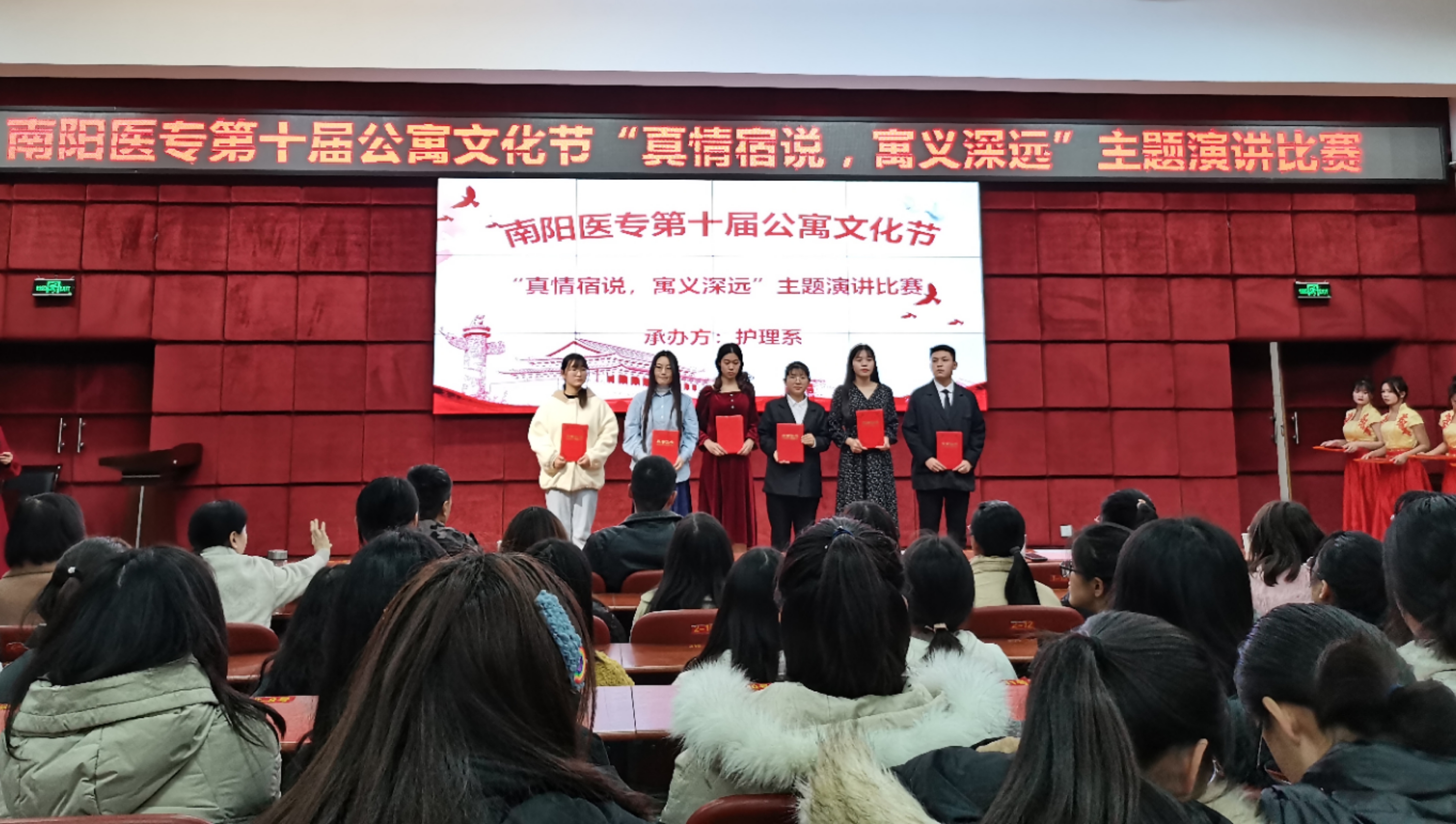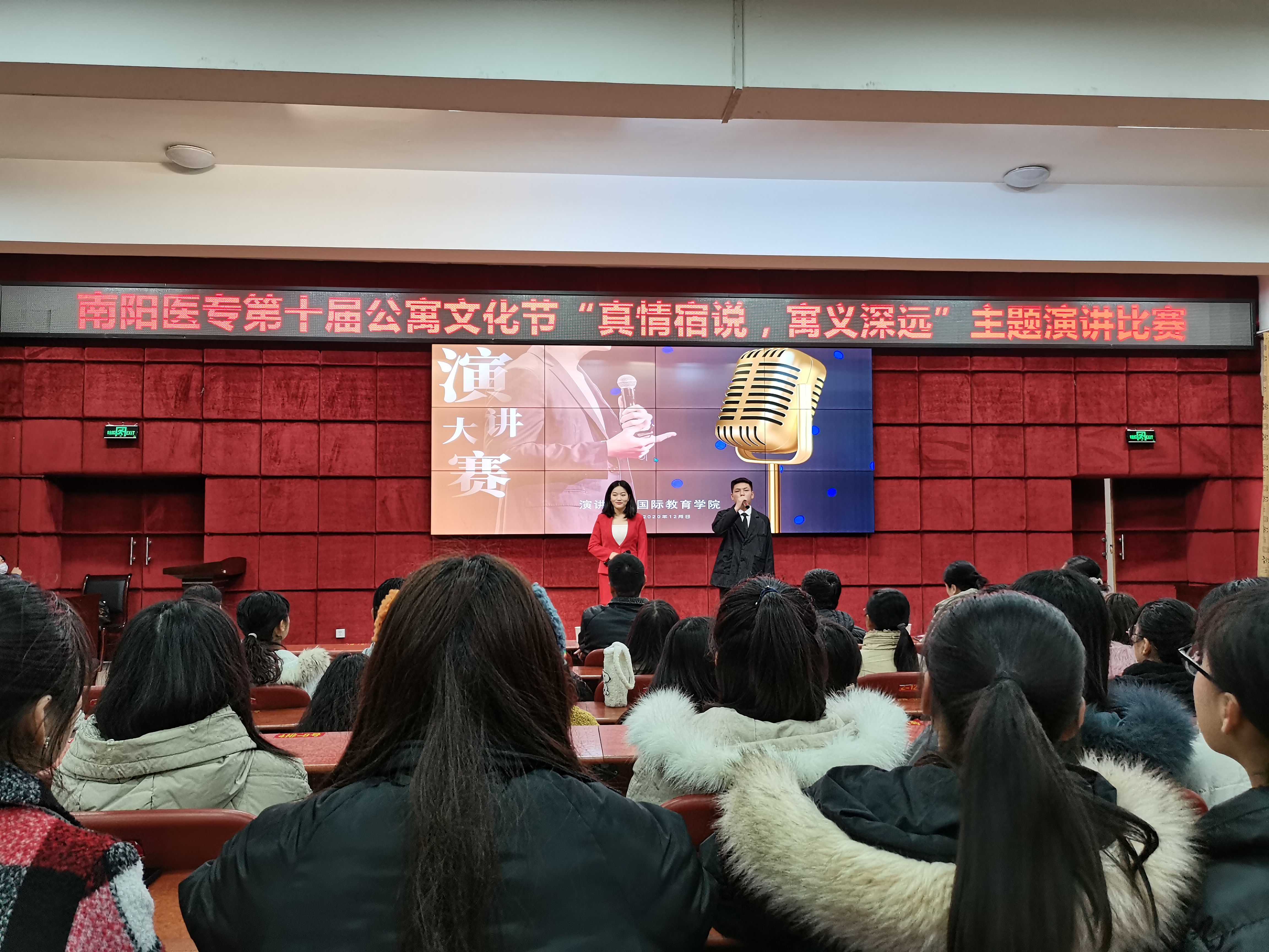 本网讯(文/护理系 闫珂)为大力加强大学生公寓精神文明建设,营造积极健康的学生公寓文化氛围, 进一步强化学生公寓“管理育人、服务育人、环境育人”的功能,12月9日下午,由护理系承办的我校第十届公寓文化节“真情‘宿’说,寓义深远”演讲比赛在图书馆五楼举行,校宣传部、团委、学生处的有关领导和老师担任了评委。