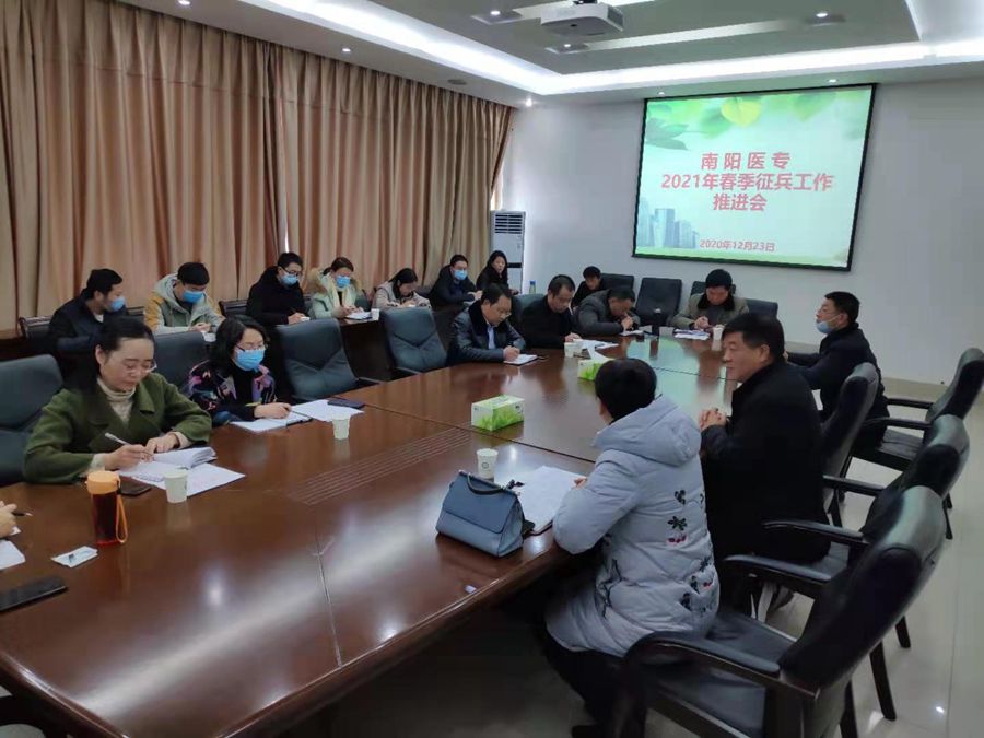 本网讯(文/学生处 皇甫乐观)12月23日下午,我校在行政楼2号会议室召开2021年春季征兵工作推进会。学校党委委员、副校长郭万周出席,武装部部长梁顺平、副部长余飞海及各系院书记、副书记、学工办主任和征兵专干参加会议。会议由武装部部长梁顺平主持。