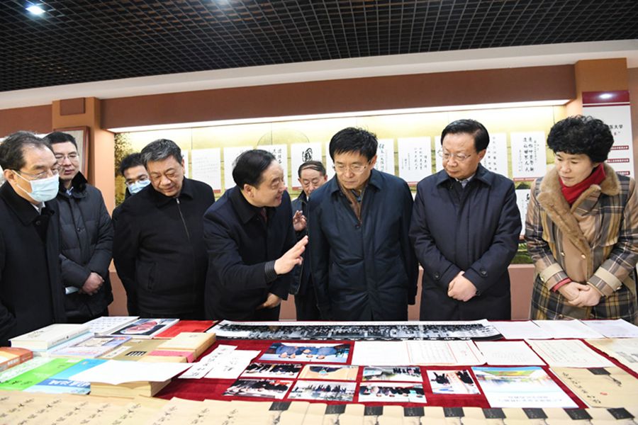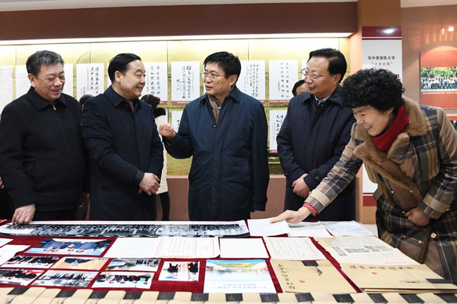 于文明局长一行来到校史馆,深入了解了学校历史沿革、办学理念、师资力量和学科设置情况,详细察看了原张仲景国医大学的历史文献、图片资料等。于局长指出,要围绕立德树人根本任务,聚焦中医药特色,抓实抓好人才培养、学科发展、科研平台建设,积极推进张仲景国医大学复建工作。