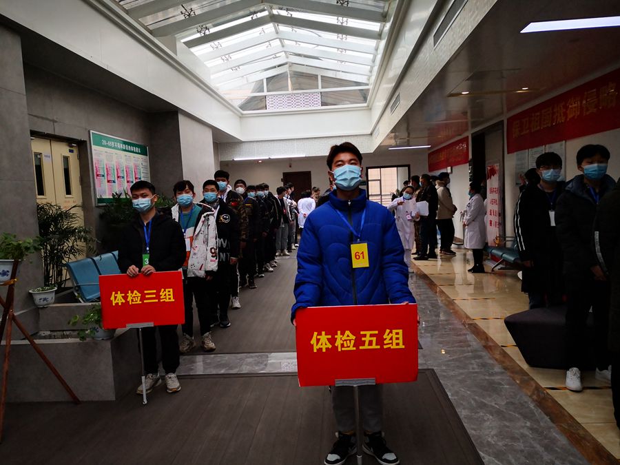 本网讯(文/学生处  皇甫乐观为落实“两征两退”举措,提升大学生应征入伍质量,1月5日上午,在南阳市军分区和卧龙区武装部的大力支持下,在南阳市第一人民医院对参加春季应征的我校136名大学生进行了征兵初检。南阳市军分区副司令员杨保军亲临现场指导工作,并嘱托检查医院要把检查工作做细、做好,确保为部队输送优质兵员。