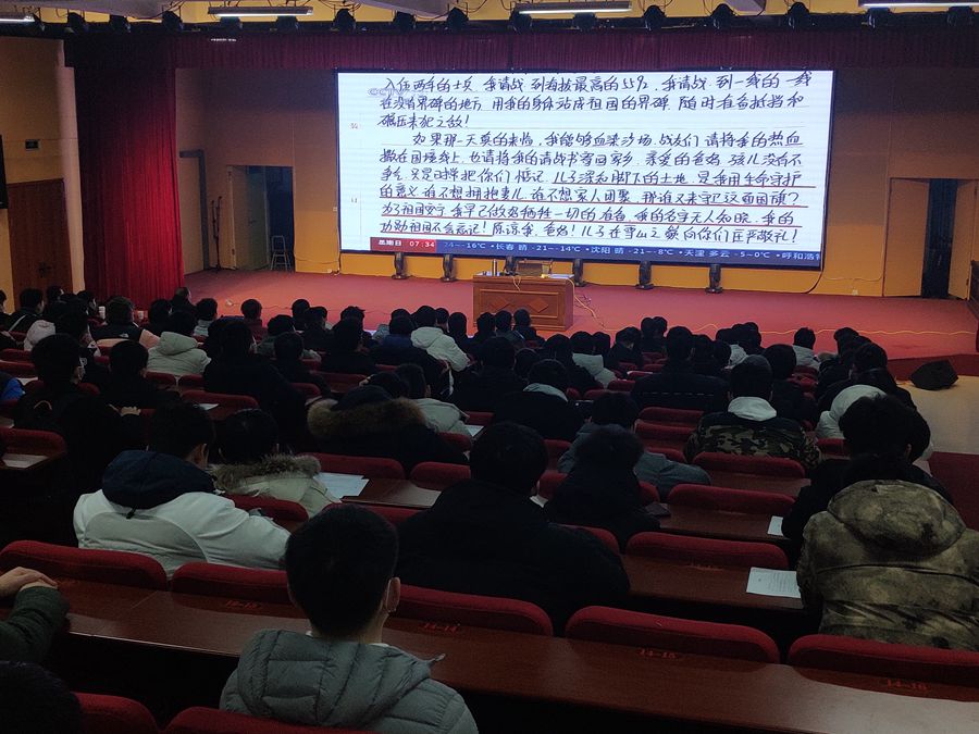 为做好此次初检工作,1月4日晚,我校武装部专题召开动员会。武装部副部长余飞海借央视新闻节目《新春走基层,海拔5592米!坚守在祖国最高驻兵点》所宣传我校优秀入伍学子——范浩源先进事迹,对参加入伍初检学生进行了一场别开生面的征兵动员和思想政治教育,对初检工作进行了扎实部署,并对学生们的假期疫情防控提出了要求。
