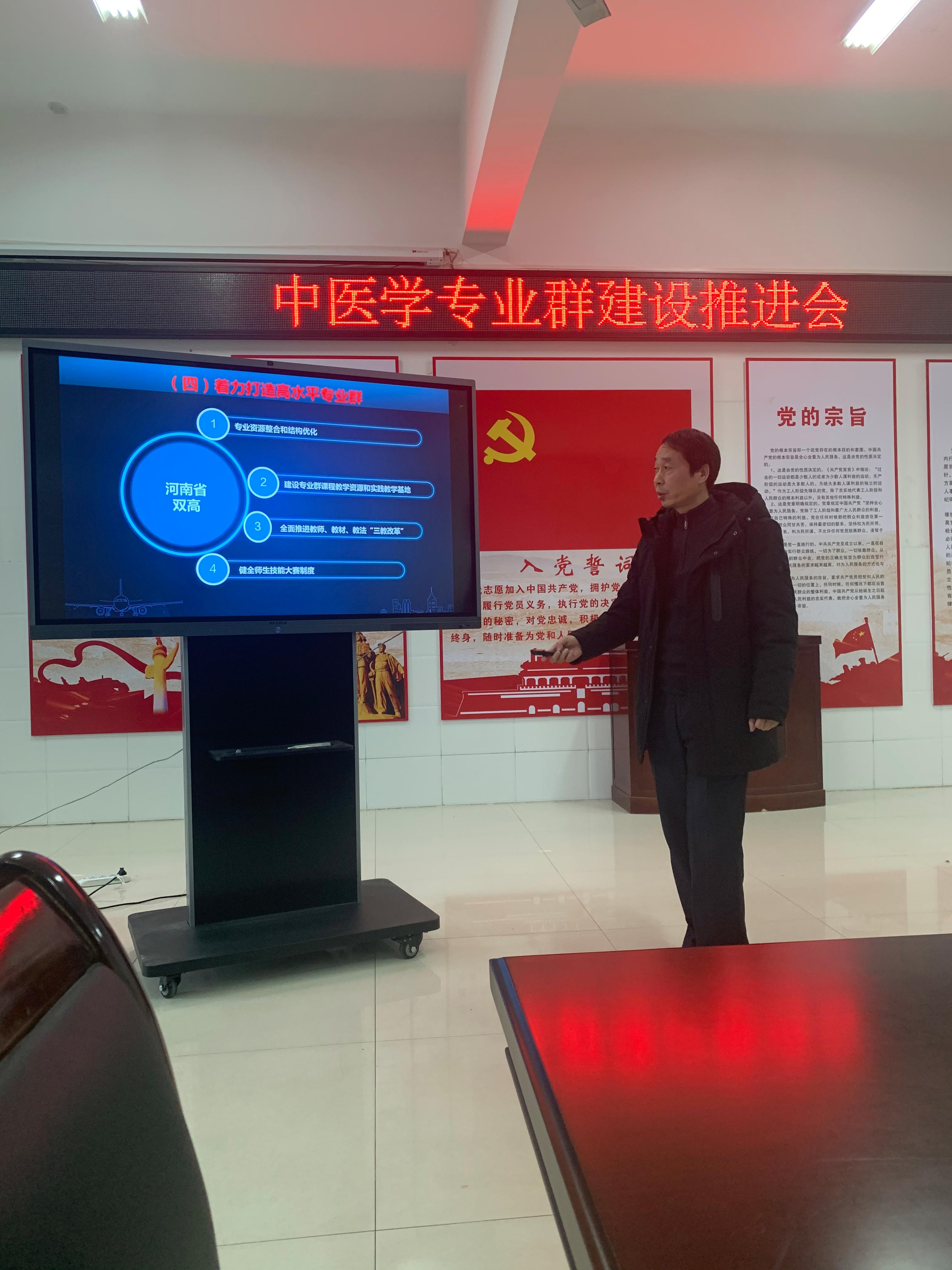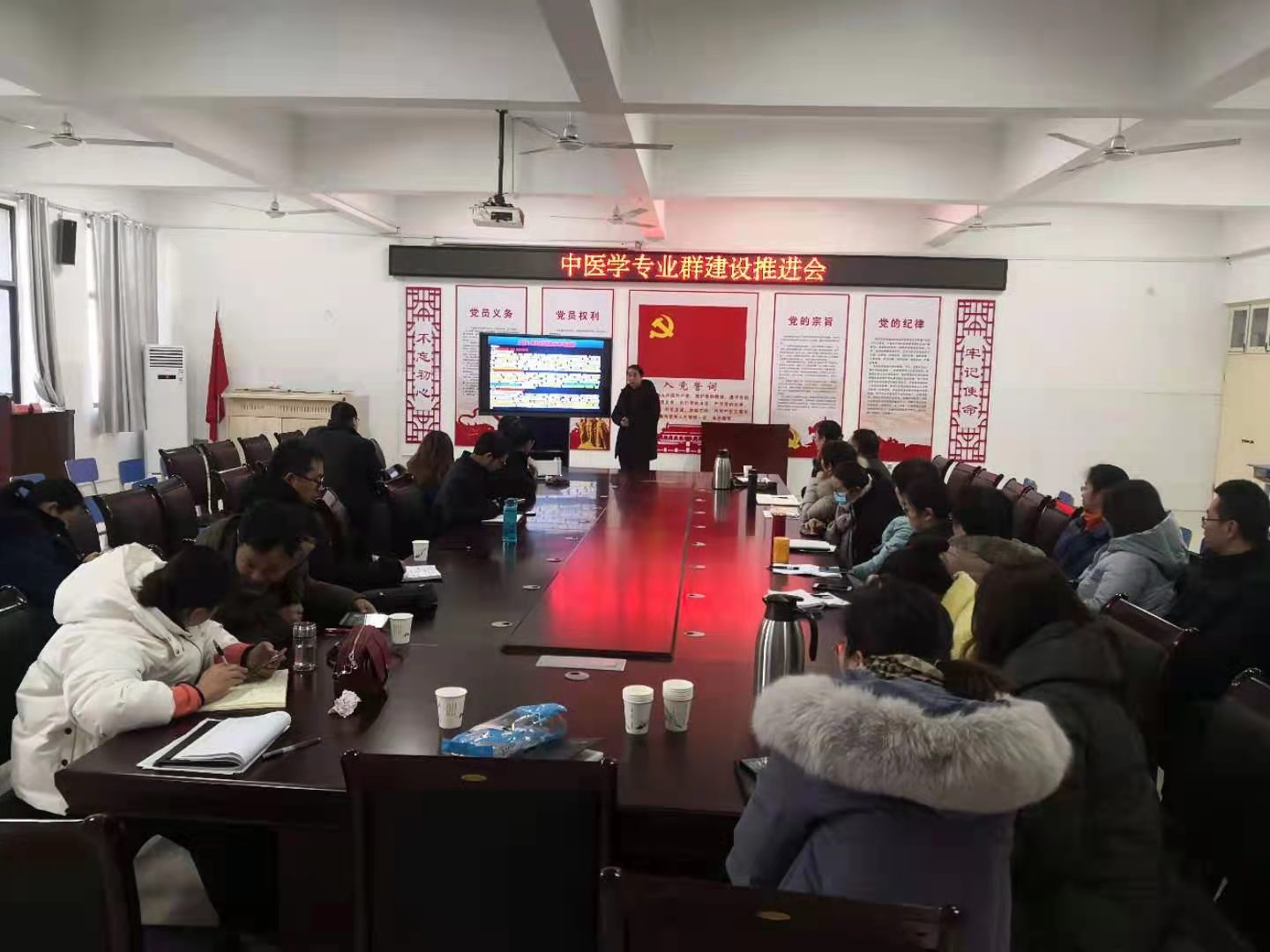 本网讯(文/中医系  张晓丽)为进一步推进“双高校”建设,促进学校高质量发展,12月31日下午,我系中医学专业群建设推进会在301党员活动室召开。教务处处长刘荣志及中医系全体教职工参加会议。会议由中医系书记张明丽主持。
