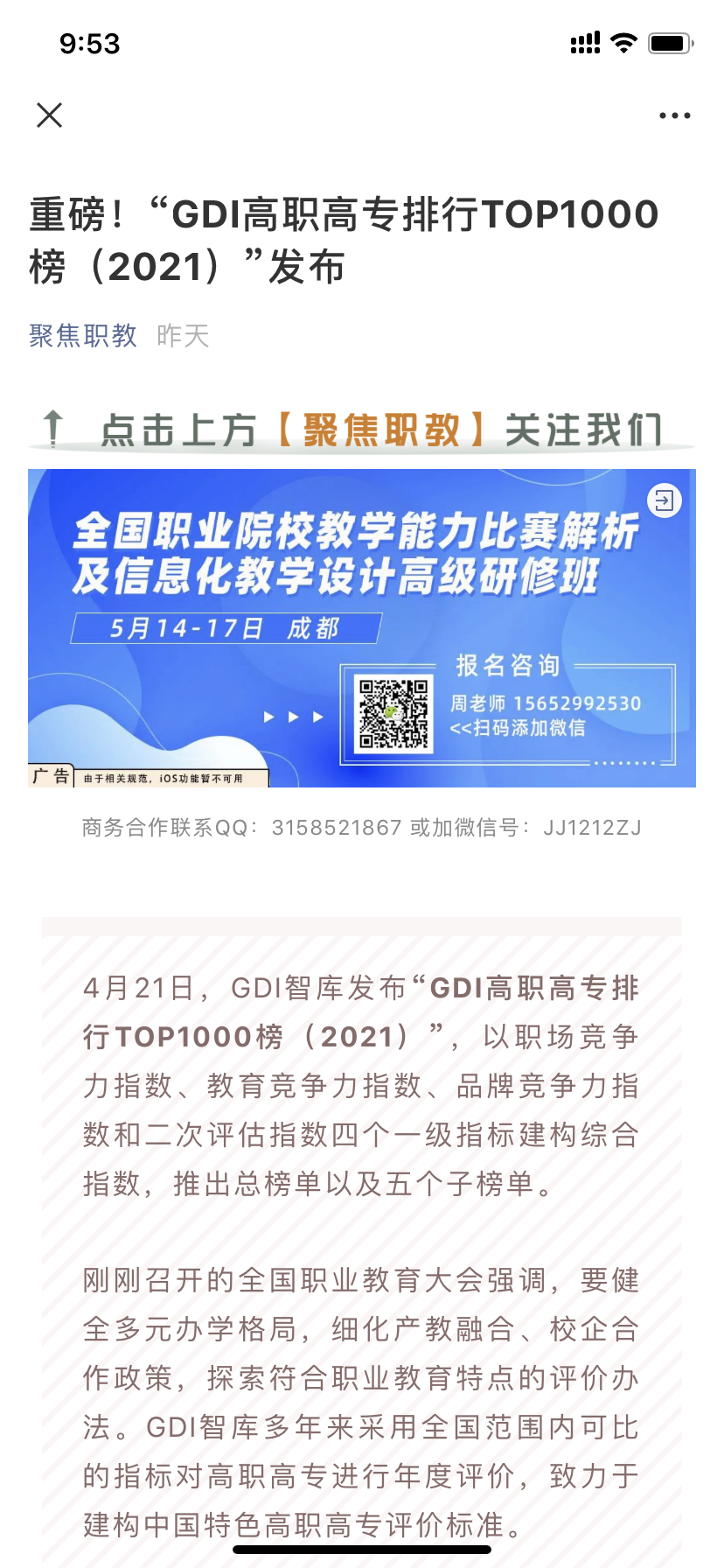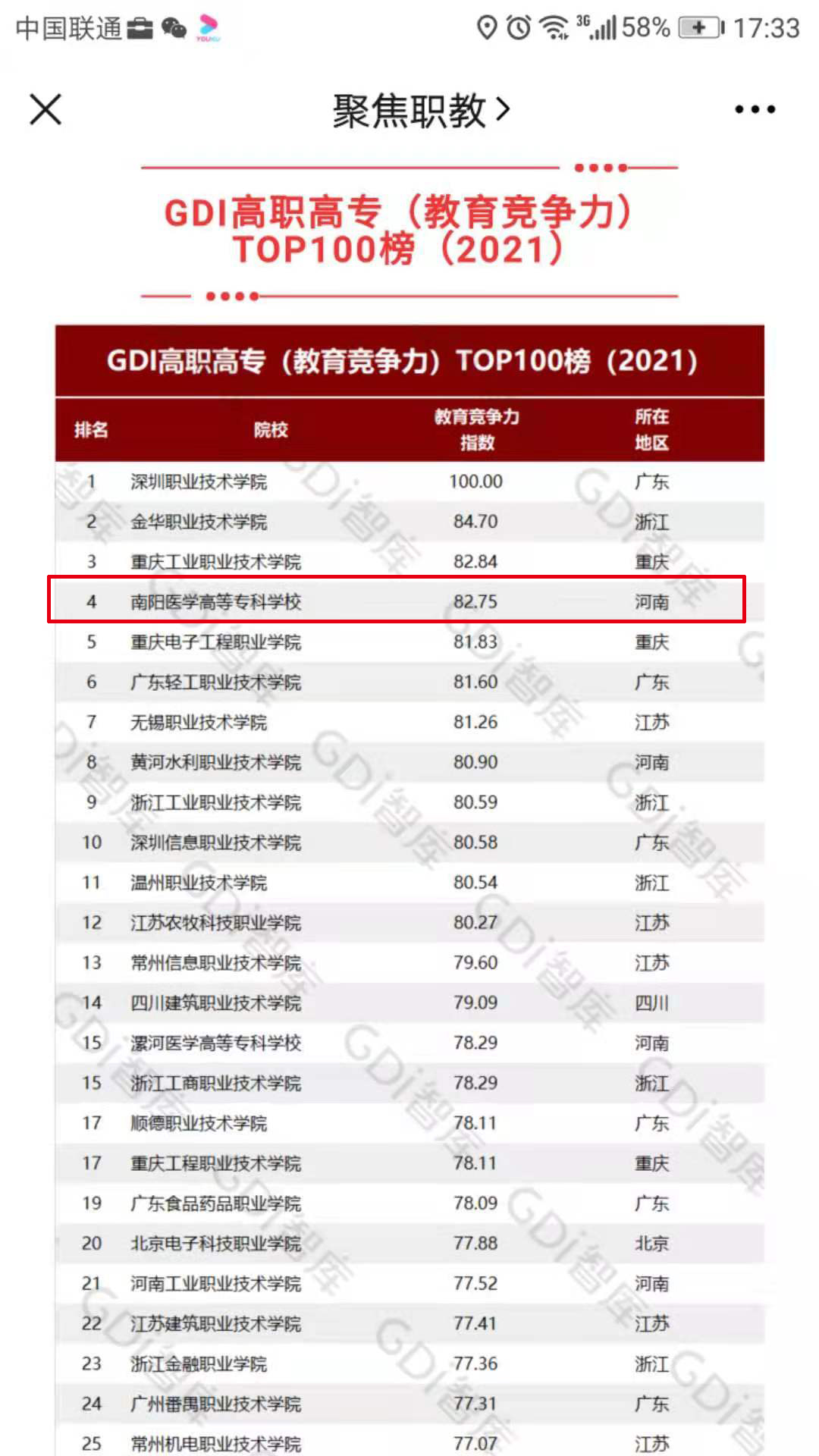 4月21日,GDI智库发布“GDI高职高专排行TOP1000榜(2021)”,榜单在对全国1451所院校的职场竞争力、教育竞争力、品牌竞争力和二次评估指数进行科学评价的基础上得出综合指数,根据指数高低确定前1000强院校名单。万象城网页版,万象城(中国)综合竞争力位居全国医学院校第一。