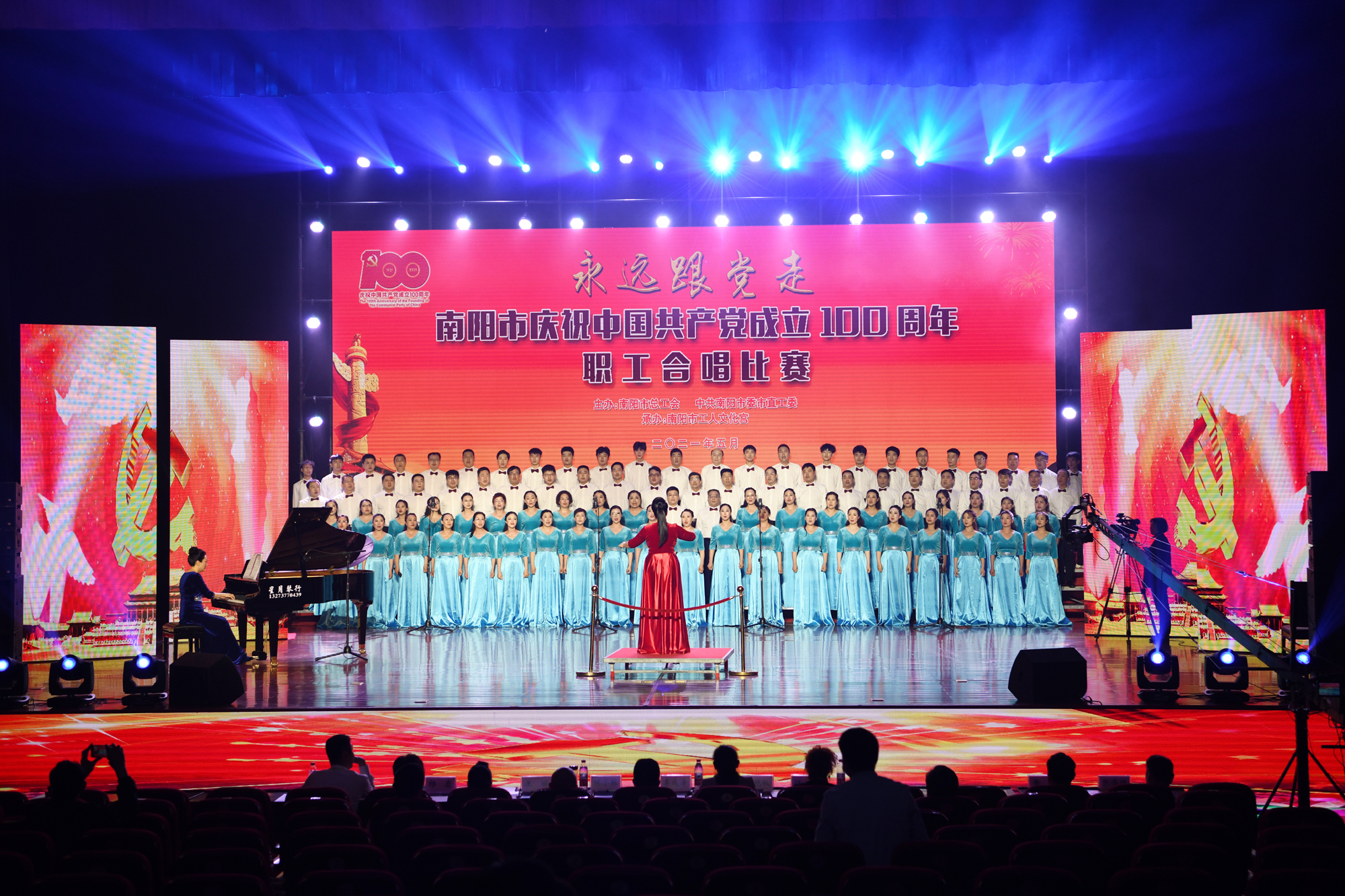 本网讯(文/校工会 朱东民)5月20日,南阳市总工会、市委市直工委举办“永远跟党走”南阳市庆祝中国共产党成立100周年合唱比赛,来自市直的三十一支代表队参赛,我校参赛曲目《没有共产党就没有新中国》荣获二等奖。