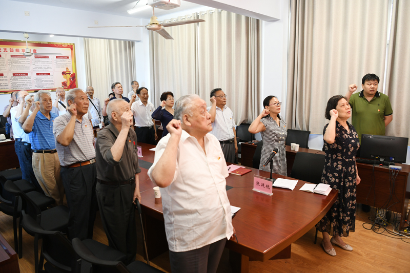 在雄壮的国歌声中,参加会议的全体同志重温入党誓词,党委组织部部长杜晓平宣读“光荣在党50年”纪念章获得者名单,党委副书记逵应坤向“光荣在党50年”纪念章获得者代表颁授纪念章,并向参加会议的的代表表示诚挚的祝贺和崇高的敬意。他指出,长期以来,广大老党员为了学校的改革发展,在各自岗位上勇挑重担、苦拼实干,走在前,干在先,充分发挥先锋模范作用,是我们永远学习的楷模。希望广大老党员继续发挥革命传统和优良作风,一如既往的为学校事业发展贡献力量。