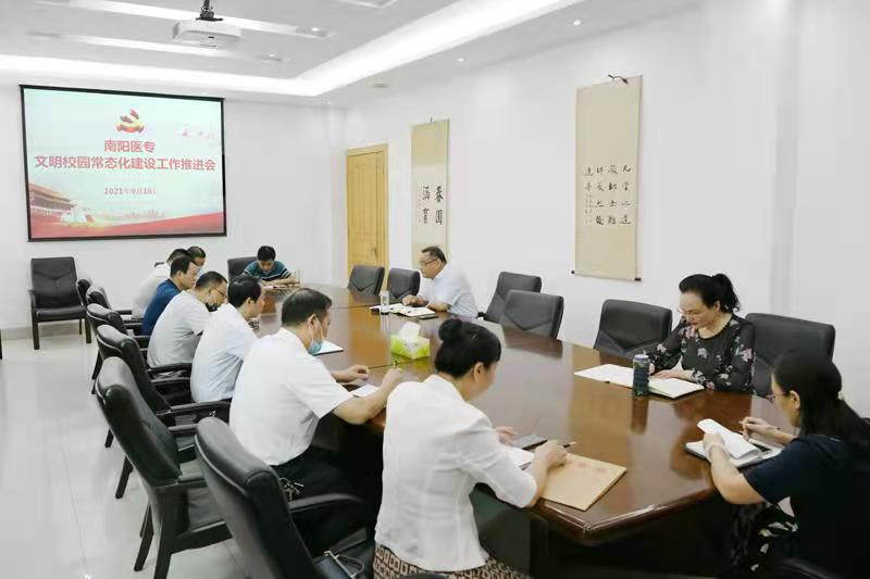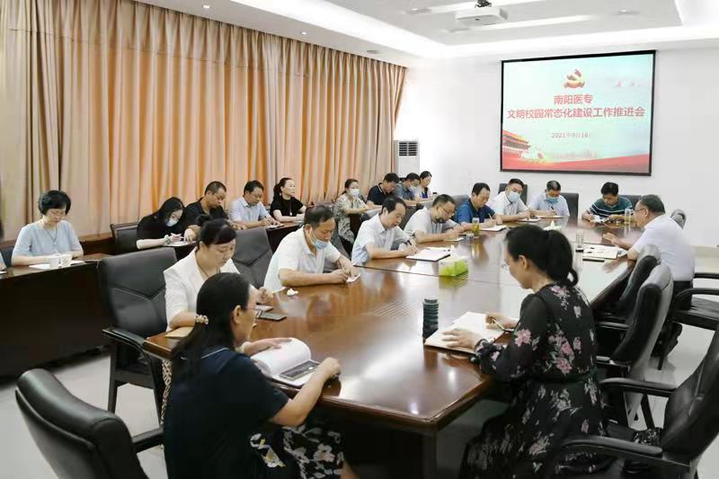 本网讯(文/宣传部 陈铁良)9月16日上午,我校在仲景西区1号办公楼三楼会议室召开文明校园常态化建设工作推进会。党委副书记逵应坤主持会议并讲话。