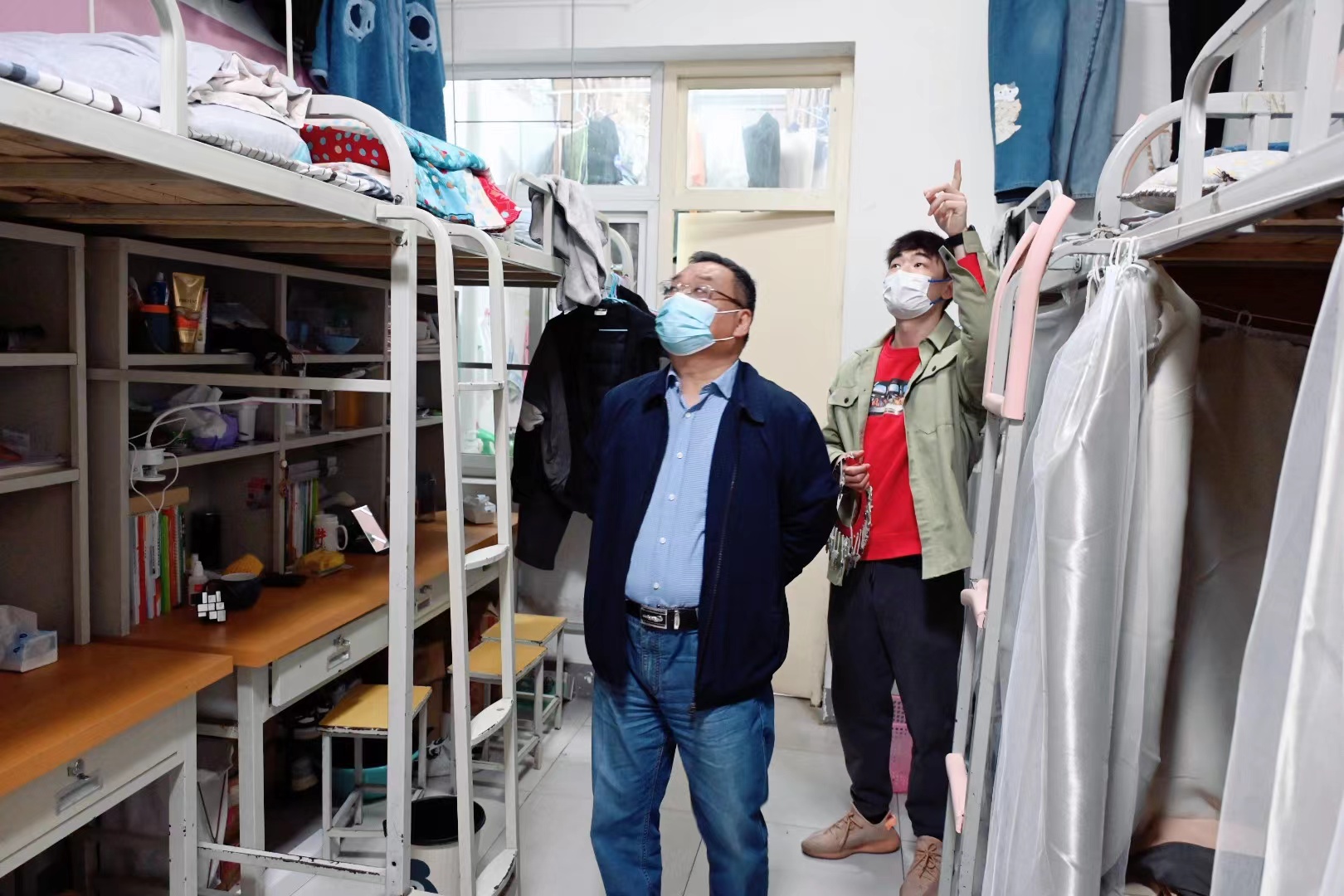 逵书记副书记对疫情防控期间的公寓安全卫生、网格化管理、早午晚测温和辅导员住寝等情况进行了解,并对公寓的规范用电、疏散通道、消防设施等重点内容进行检查。叮嘱辅导员要认真落实住寝制度,把值班室建成学生信息反馈、思想沟通的温馨家园,及时了解和发现学生的诉求和困难,做好常态化疫情防控下学生教育、管理和心理疏导工作,避免因为“闭环”管理出现心理危机。宿舍调研结束,逵应坤一行前往隆盛印象学生餐厅,与联系班级的贫困学生一起就餐,和同学们及食堂管理人员进行了深入交流,详细了解饭菜价格、服务态度、食品安全等方面的问题,要求食堂管理人员要以生为本,把学生健康成长放在第一位。逵应坤还对学生们的疑虑和问题进行了解答。