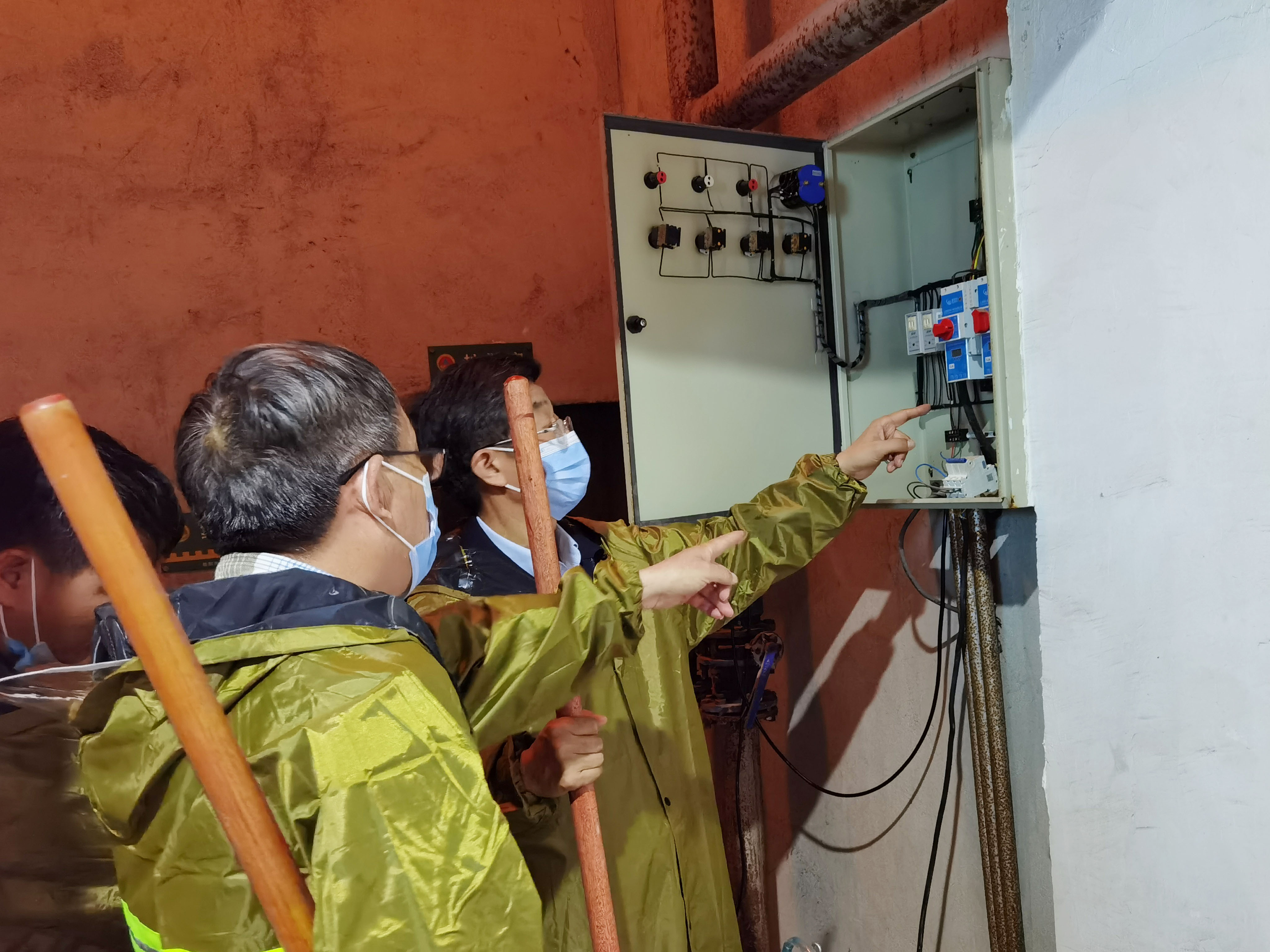 推进会后,张国良带领抢险队全体成员来到实验楼地下室、人行过街通道等防汛重点部位进行实地查看,检查用电安全、排水系统,并进行了防汛演练。