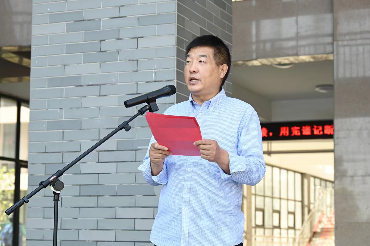 本网讯(文/中医系 张晓丽)5月5日上午,南阳医专二附院分院暨中医专业群产教融合实训中心揭牌仪式在仲景东区教学楼前广场举行。副校长郭万周、范真,二附院院长乔泽强,学校相关部门负责人及教职工代表和学生代表参加。揭牌仪式由中医系主任王春成主持。