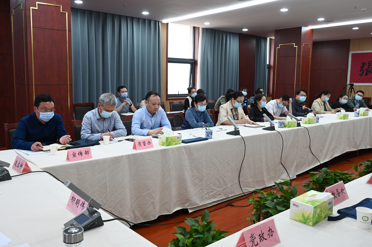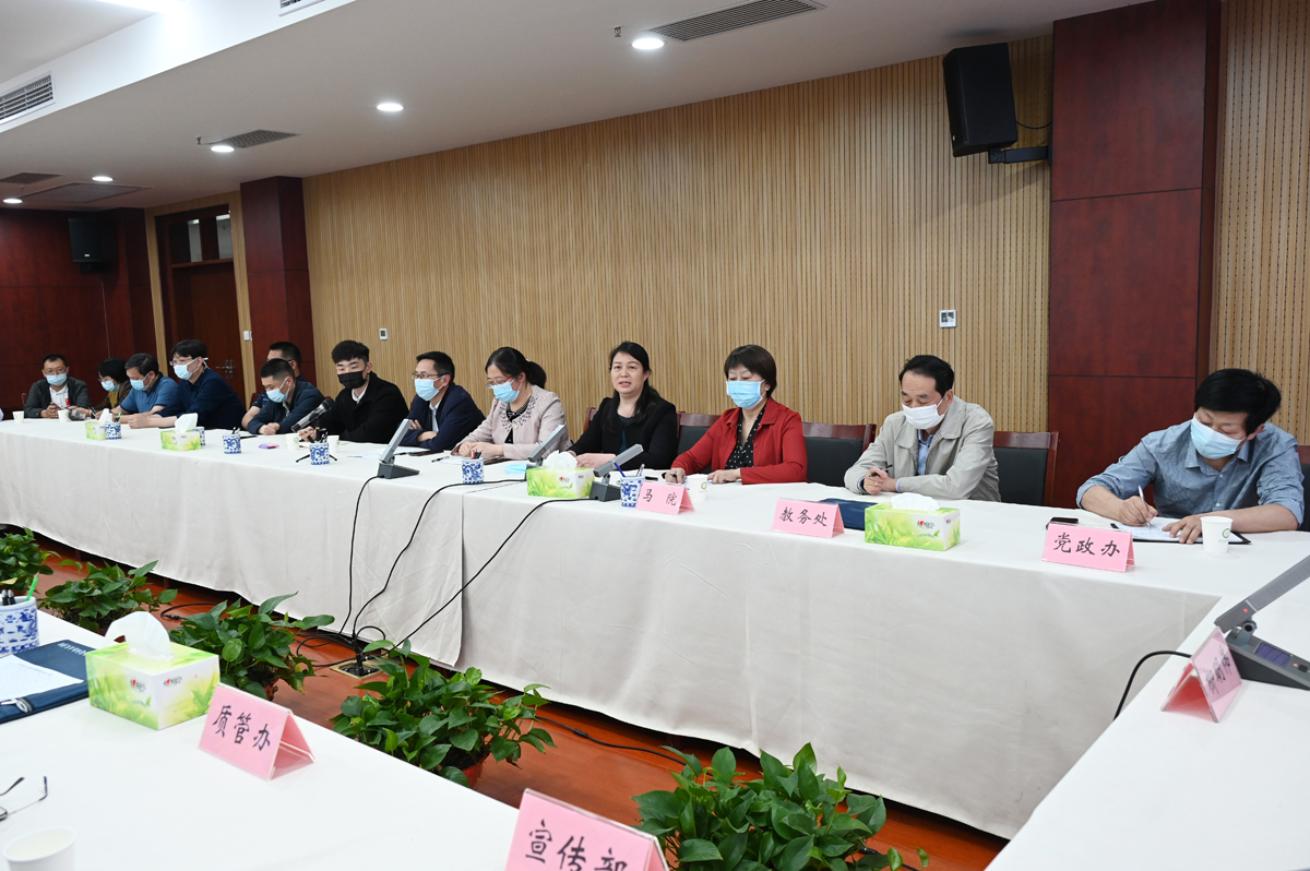 本网讯(文/马克思主义学院 雷雨泰)为更好了解掌握我校思政课建设工作情况,推进学校思政课教学与思政课教师队伍建设高质量发展,5月18日下午,党委书记柳明伟深入马克思主义学院召开学校思想政治理论课教师专题座谈会。校领导逵应坤出席并主持,党政办、宣传部、教务处、质量管理办公室等部门负责同志及全校思政课专兼职教师部分代表参加座谈会。
