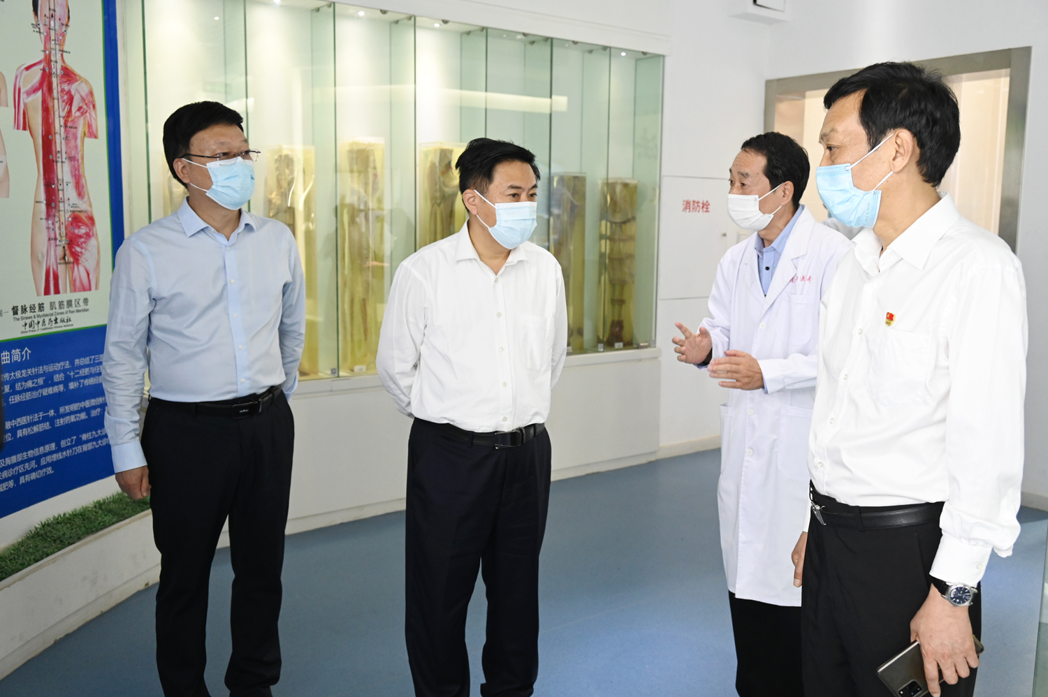 王智慧一行首先在南阳医专党委书记柳明伟、校长王立义陪同下考察了校园环境、教学设施和实验实训等场馆。在人体生命科学馆,王智慧仔细观看各类科研标本,认真听取讲解汇报,了解中医药在当前疫情防控中的重要价值和显著成效。他和正在开展实训学习的同学们亲切交流,询问生活学习情况,勉励大家学好专业知识,扎根基层,甘于奉献,在人民群众最需要的地方绽放属于自己的青春之花。